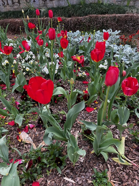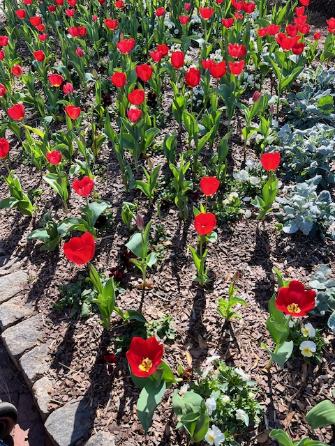 The next time I was assigned to that same spot, I noticed something different. Although the tulips were in the same flowerbed, some were open, and some were closed even though hours have passed. Before they had all opened in sync. Then still others were taller while others were shorter; some new ones had begun to bud!